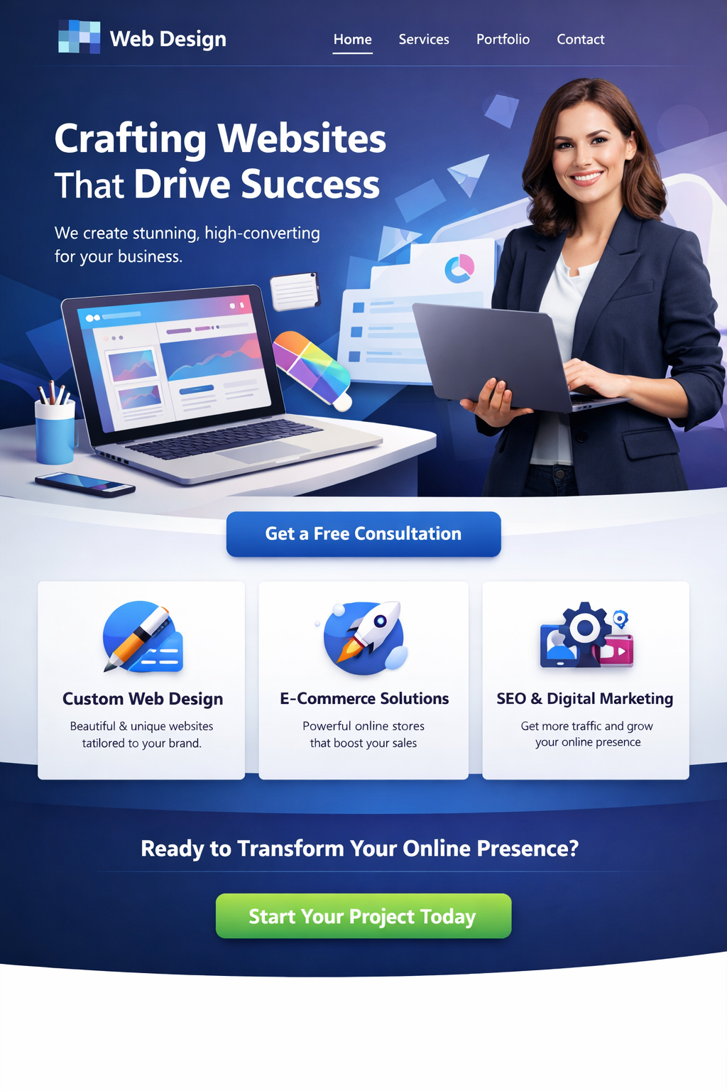 What We Offer Custom Website Design Unique, visually appealing designs that reflect your brand and set you apart from competitors. Responsive & Mobile Design Your website will look and perform perfectly on desktops, tablets, and smartphones. User Experience (UX) Optimization We design intuitive navigation and layouts that guide users toward action. Performance & SEO Optimization Clean code, fast loading times, and SEO-ready structure to help your site rank higher. Ongoing Support & Maintenance We provide updates, improvements, and technical support after launch.
